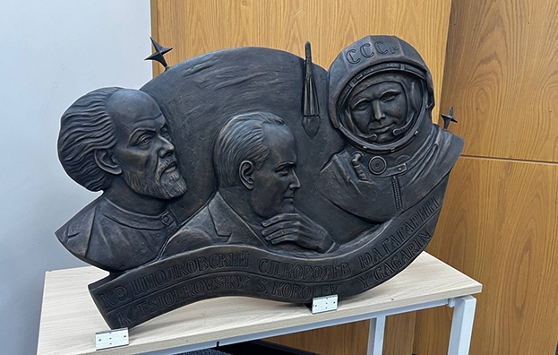 национальному космическому центру было передано панно «К.Э. Циолковский. С.П.
