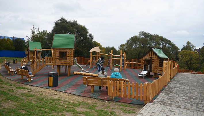 общественном пространстве установили домики Бабы Яги и Лешего, качели и